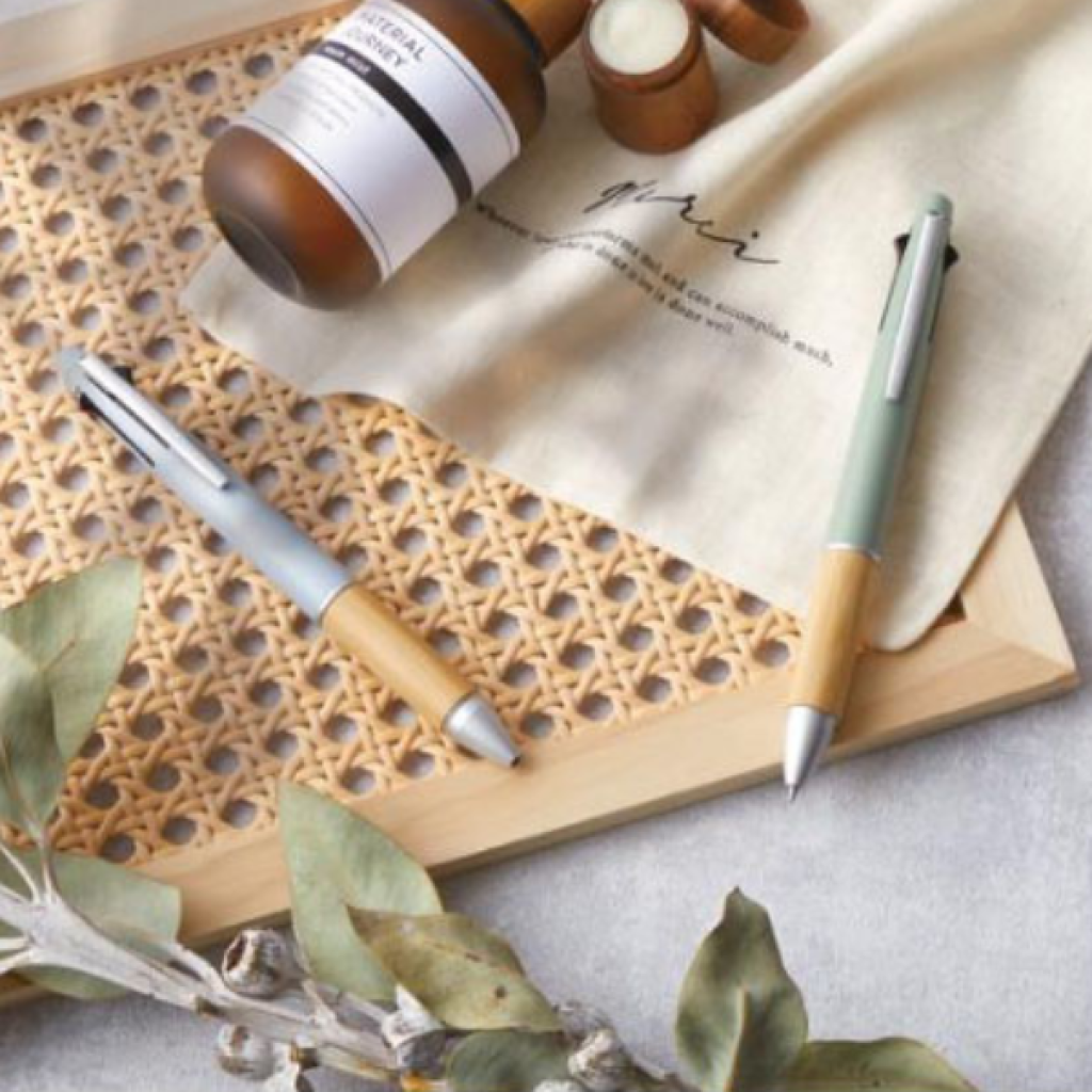「こころ軽やかに暮らすための毎日の筆記具」をコンセプトとして、ペン軸に竹材を使用した商品です。竹素材の美しさを生かして細部まで竹の軽やかさをイメージできるデザインを施し、日々の暮らしに溶け込む、まろやかで優しいカラーリングをラインアップいたしました。