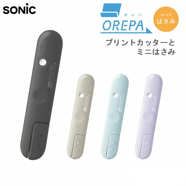1本2役!まっすぐ切れるプリントカッター オレパに、サクサク切れるミニはさみ付で、プリントの部分カットや、タグの糸カットなど多用途に活躍します。
