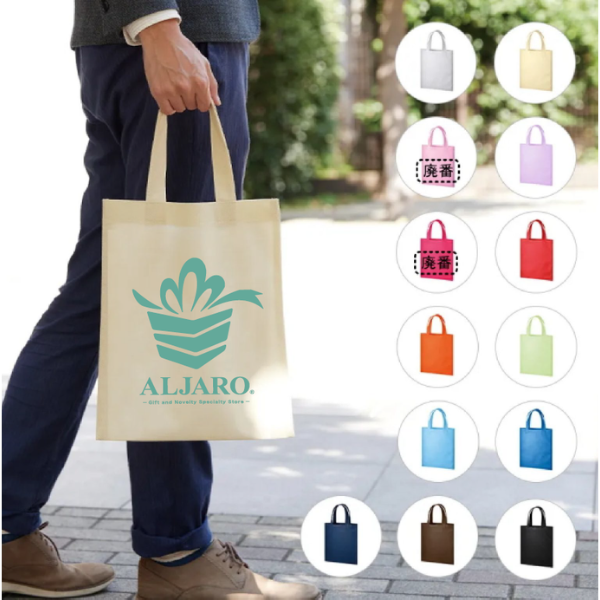 選べる11色展開が嬉しいA4サイズの資料を入れられるフラットタイプの不織布のトートバッグです。