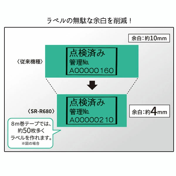 従来機種(SR670)と比べて、ラベルを印刷した際の無駄な余白が少なくなりました。