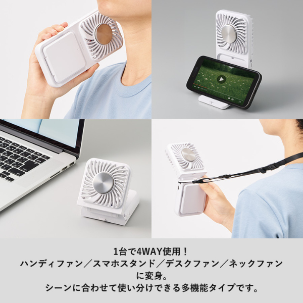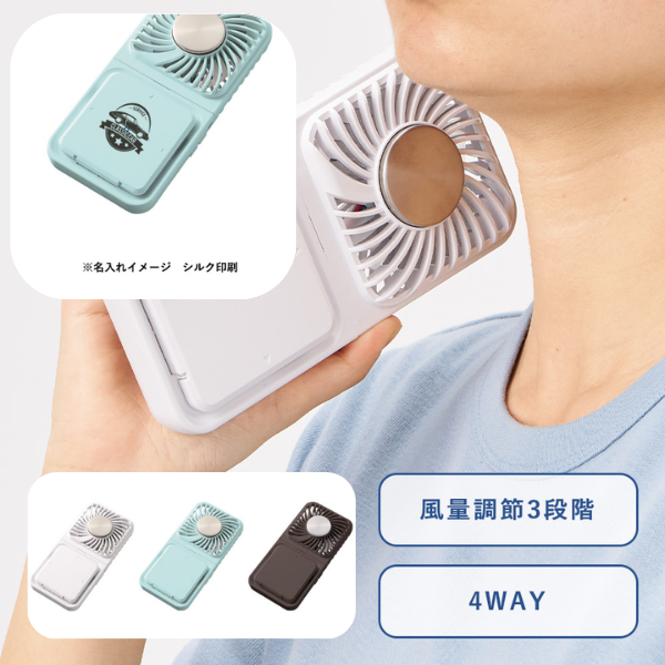 手持ち・卓上・首掛けの3WAY仕様で、現場やイベント時の熱中症対策にも最適。