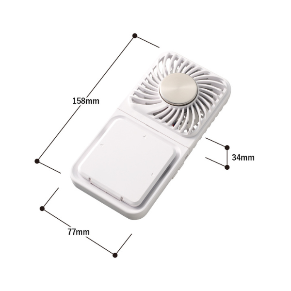 首筋や手首に当てて直接冷やせる冷却プレートに加え、前後スタンドを展開すれば卓上ファンとしても使用可能。