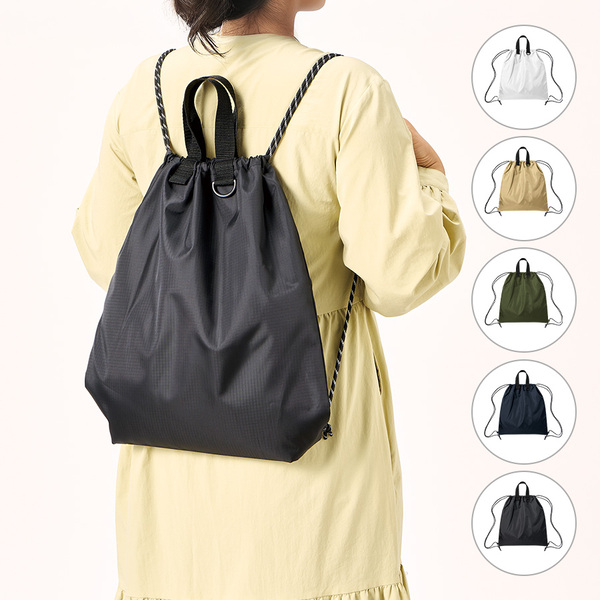 サイドのゴムでコンパクトにまとめて持っておけば、荷物が増えてしまったときにもサブバッグとして重宝します。