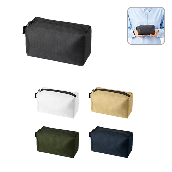 丈夫なリップストップ生地を使用したフラットポーチです。