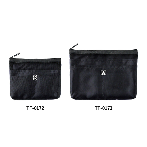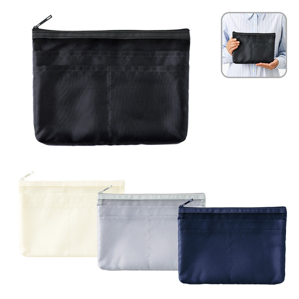 やや大きめサイズで収納力があり、小物類を用途別に整理しやすいポーチです。