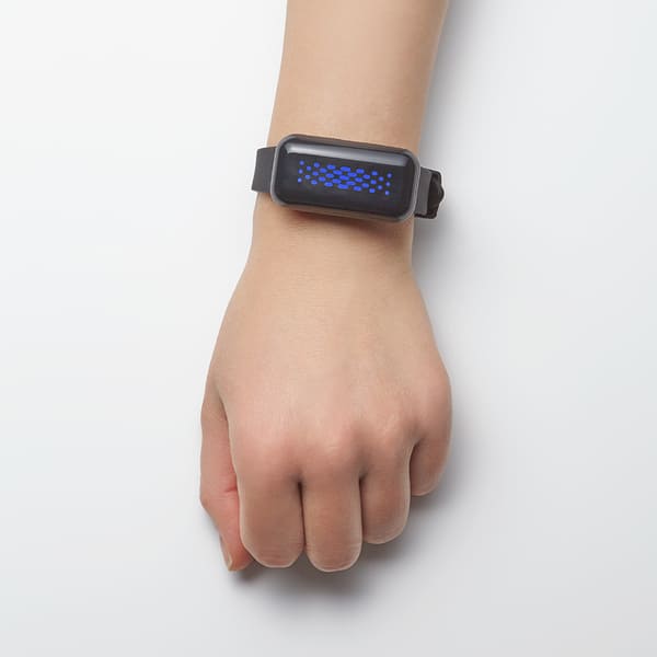 体調異変を検知し、熱中症リスクを音・光・振動でお知らせする、使い切りタイプのウェアラブルデバイスです。