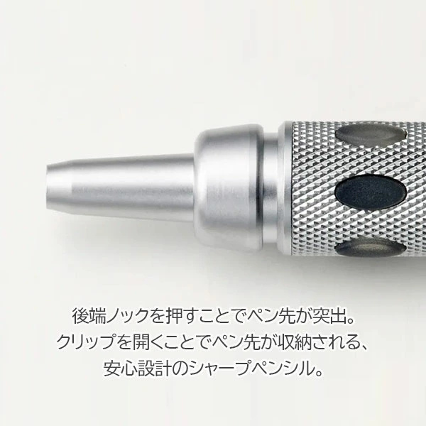 ペン先が紙面から離れるたびに、自動で芯が出てくる機構を搭載し、最初のワンノックだけで、残り芯が短くなるまで書き続けられます。